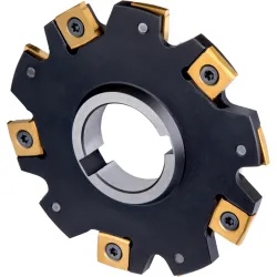 Disc mill with double negative geometry which utilises 5 off snhq 1102.. Double-sided inserts, cutting diameter 4. 000” with 90° approach angle and 1. 250” connection bore according to din 8030, for deep slot milling with a width of cut of . 313”
