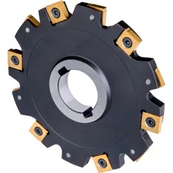 Disc mill with double positive geometry which utilises 12 off snhq 1102.. Double-sided inserts, cutting diameter 5. 000” with 90° approach angle and 1. 250” connection bore according to din 8030, for deep slot milling with a width of cut of . 313”