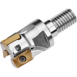 Shoulder mill with positve/negative geometry which utilizes 3 off admx 11t3.. Or adex 11t3.. Single-sided inserts, cutting diameter . 750” with 90° approach angle and m10 threaded shank for standard modular tool-holders, 1. 024” protrusion length, through coolant for copy milling, shallow shoulder milling, shallow slot milling, ramping, helical milling, plunge milling and progressive plunge milling with a maximum depth of cut of . 354”